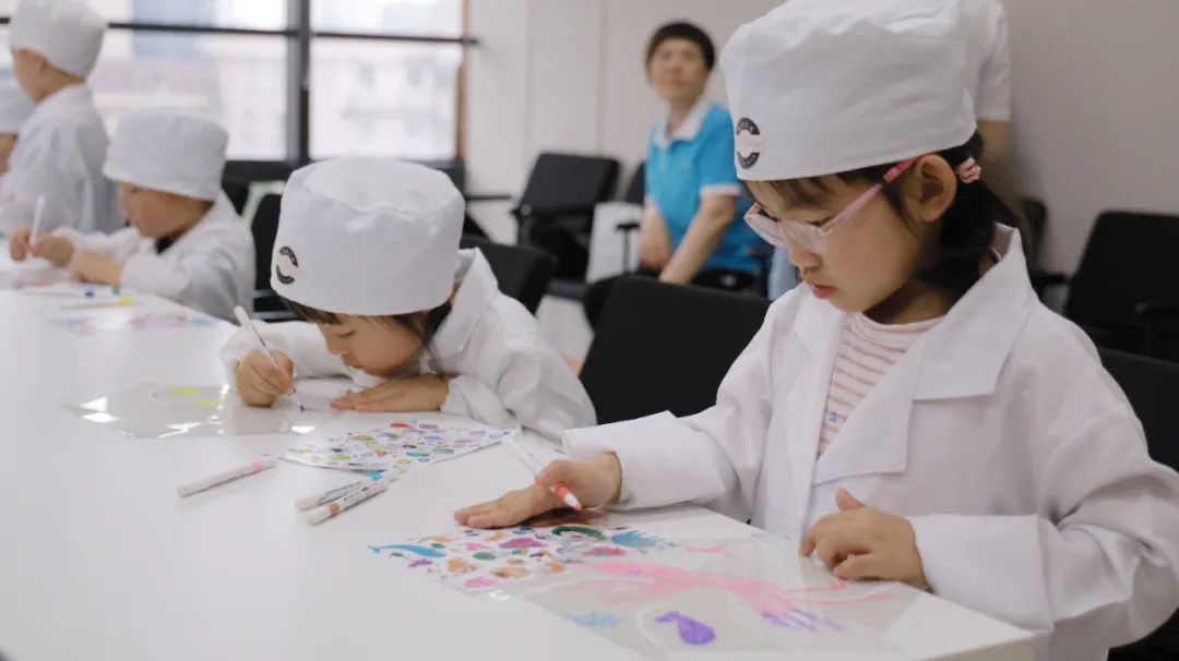 活动开始,家长们为小朋友们换上白大褂、医生帽,俨然一副“专业”的医生架势,小朋友们迫不及待的想要开始“小小牙医”体验之旅了!